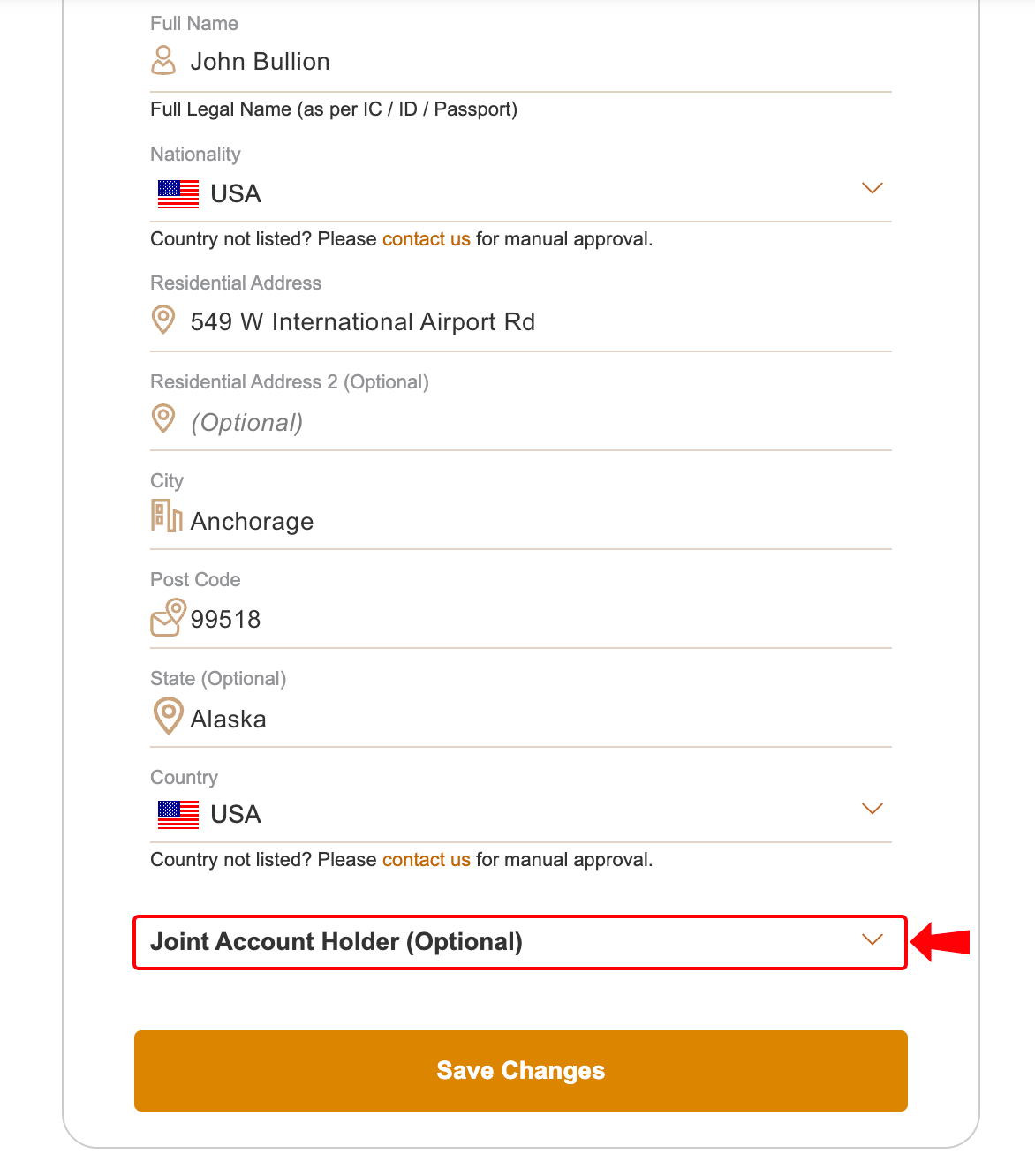 Adding a Joint Account Holder to Your BullionStar Account