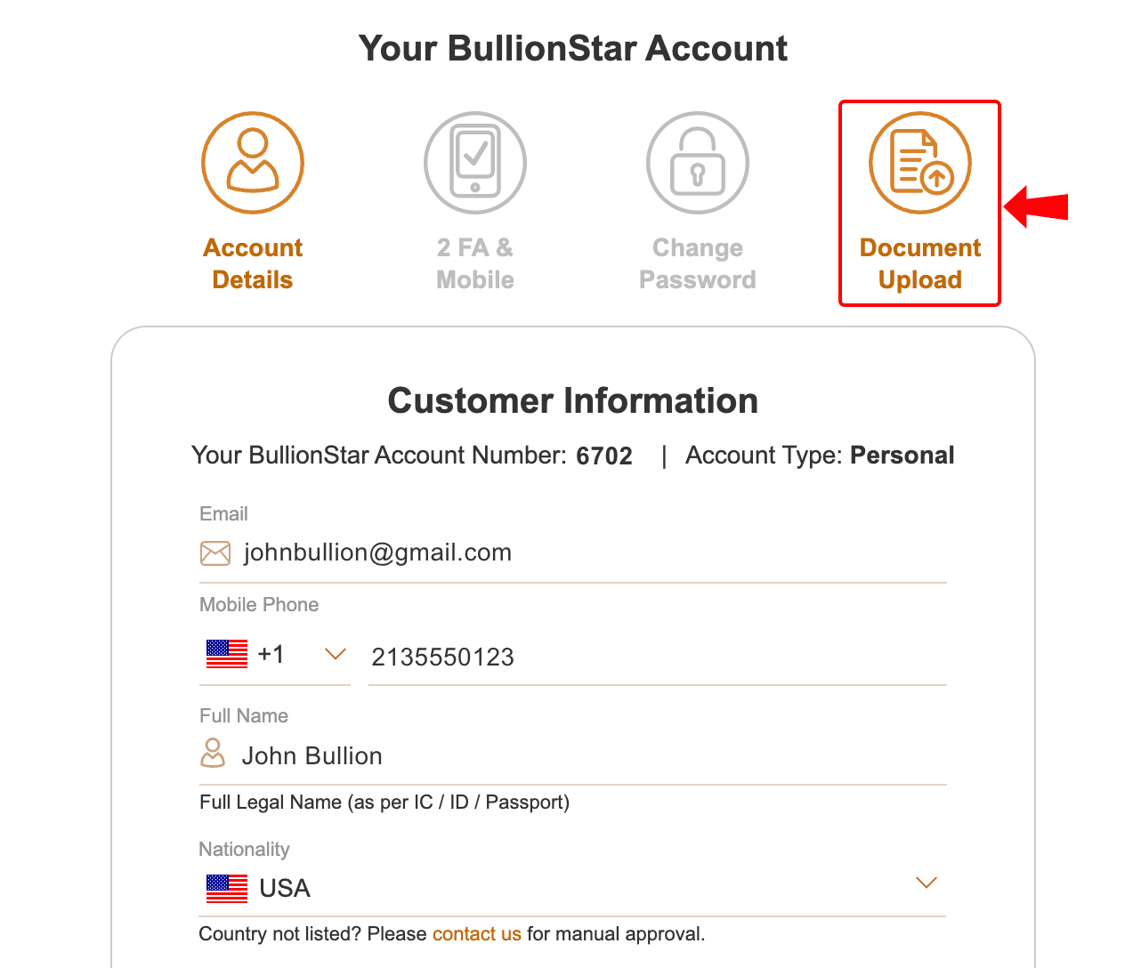 Our team will then vet and approve your BullionStar account.
